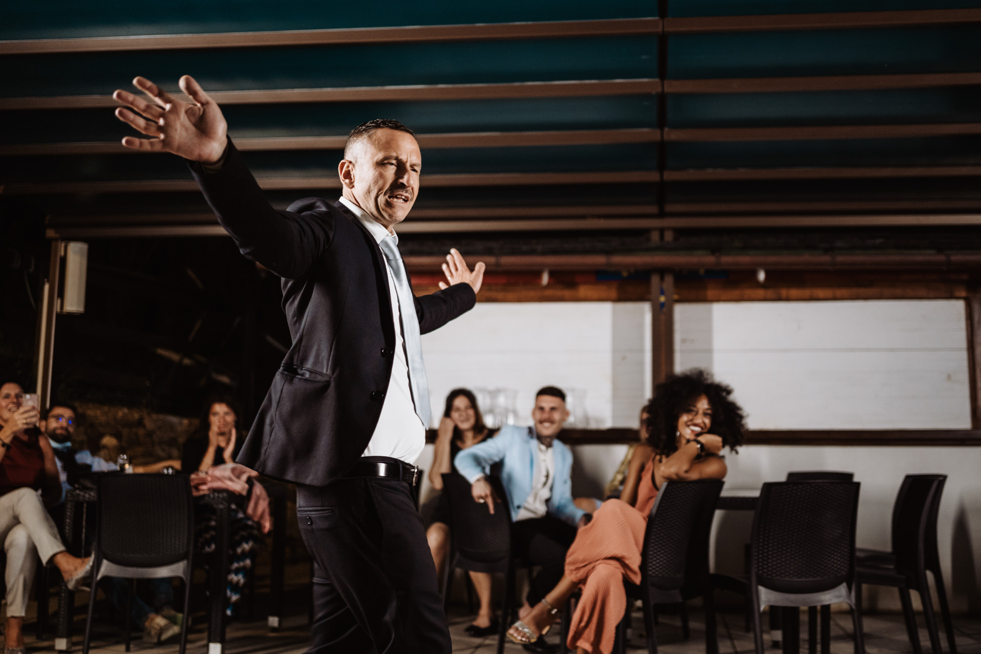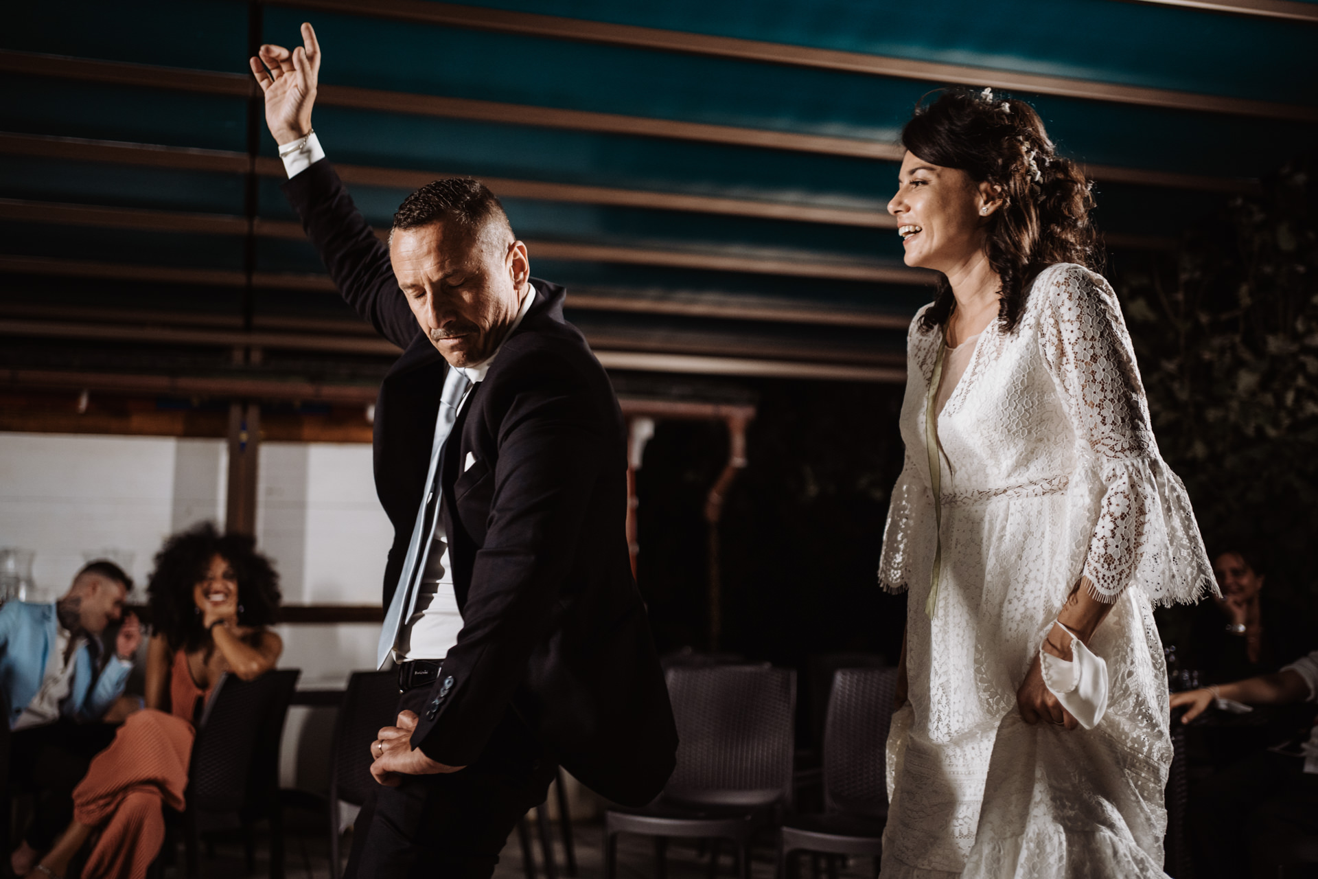 L’agitazione di Roberto nell’attesa di Francesca, la tenerezza infinita di quegli abbracci, quel pizzico di timidezza vinta da un’euforia incontenibile, bello tutto. Poi la festa, dove Roberto ha dato spettacolo al cospetto di una Francesca piuttosto preoccupata con balli che prima o poi saprà spiegarmi. 🙂
