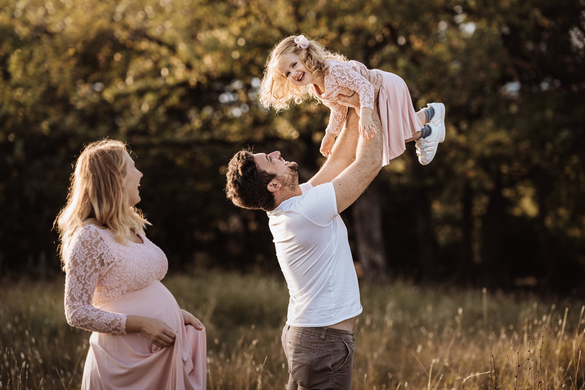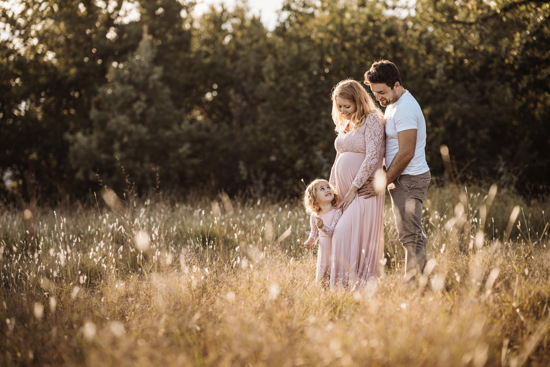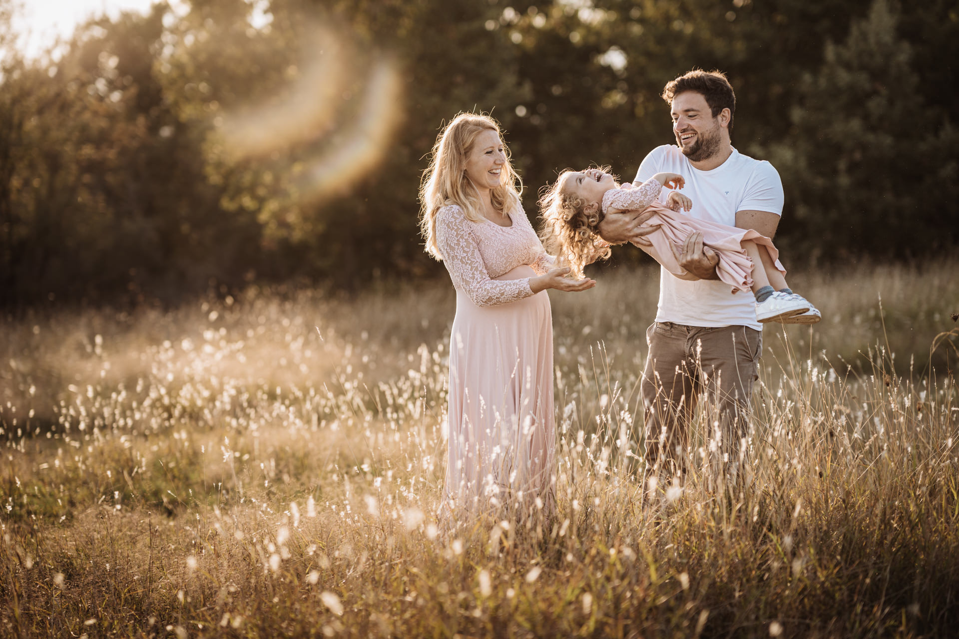 Per la sessione maternità abbiamo deciso di sfruttare la bella stagione e di concederci una splendida uscita all’ora del tramonto in un campo nei dintorni di Arenzano. Che dire, le luci erano semplicemente splendide tanto quanto i nostri modelli!