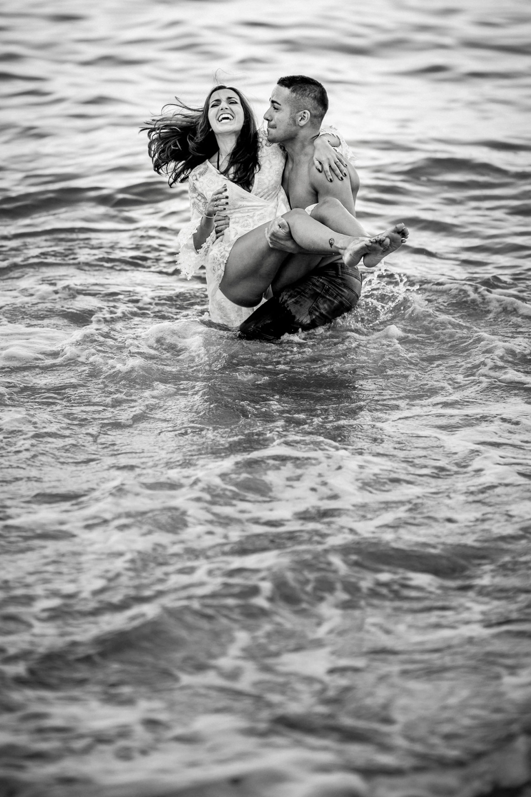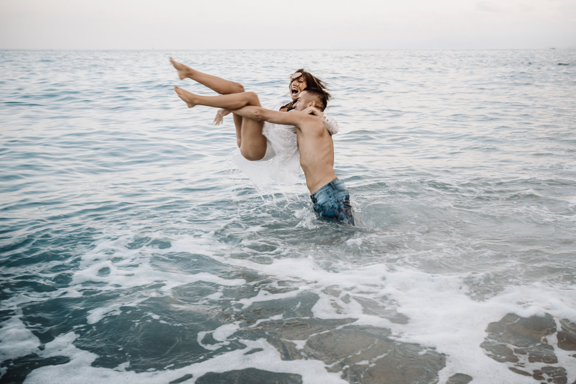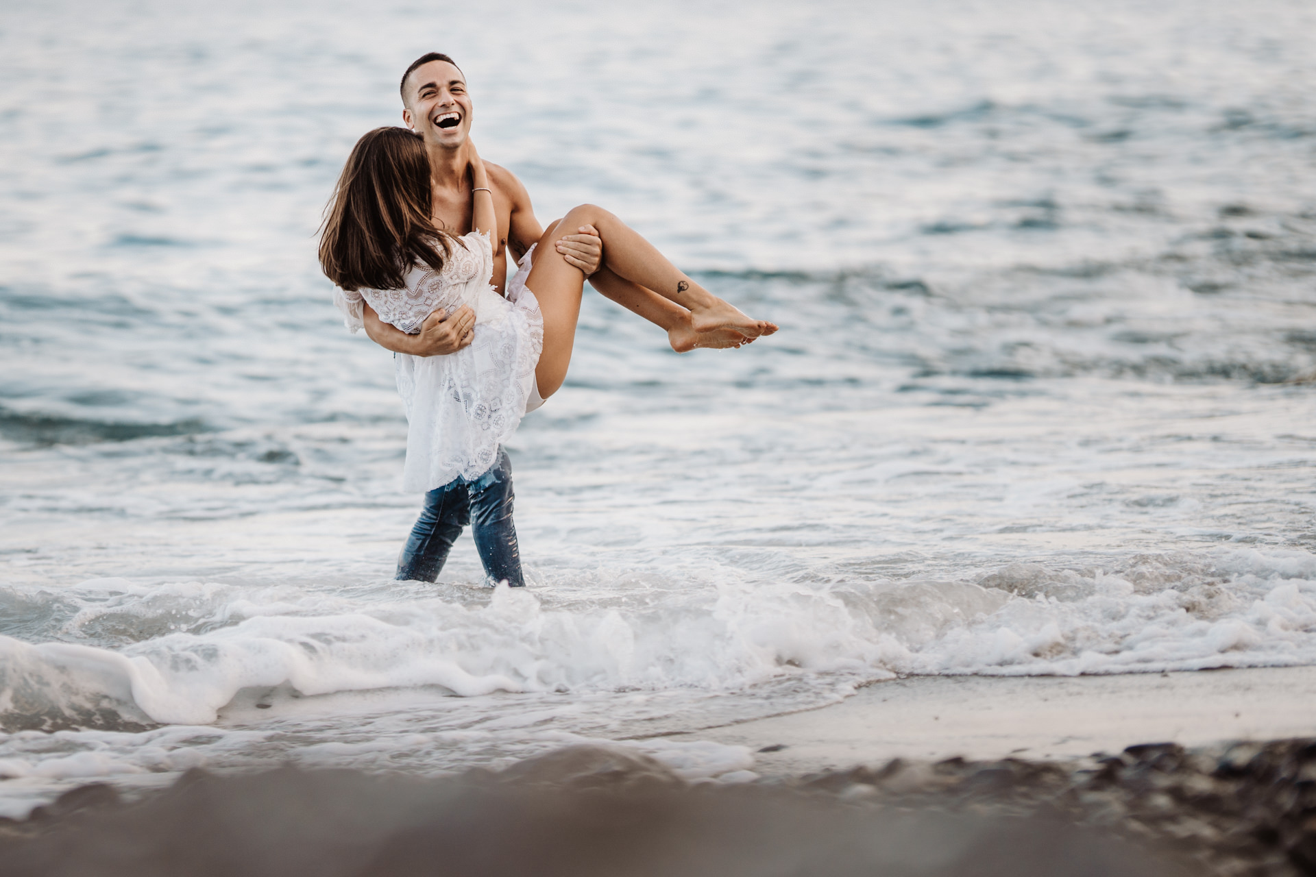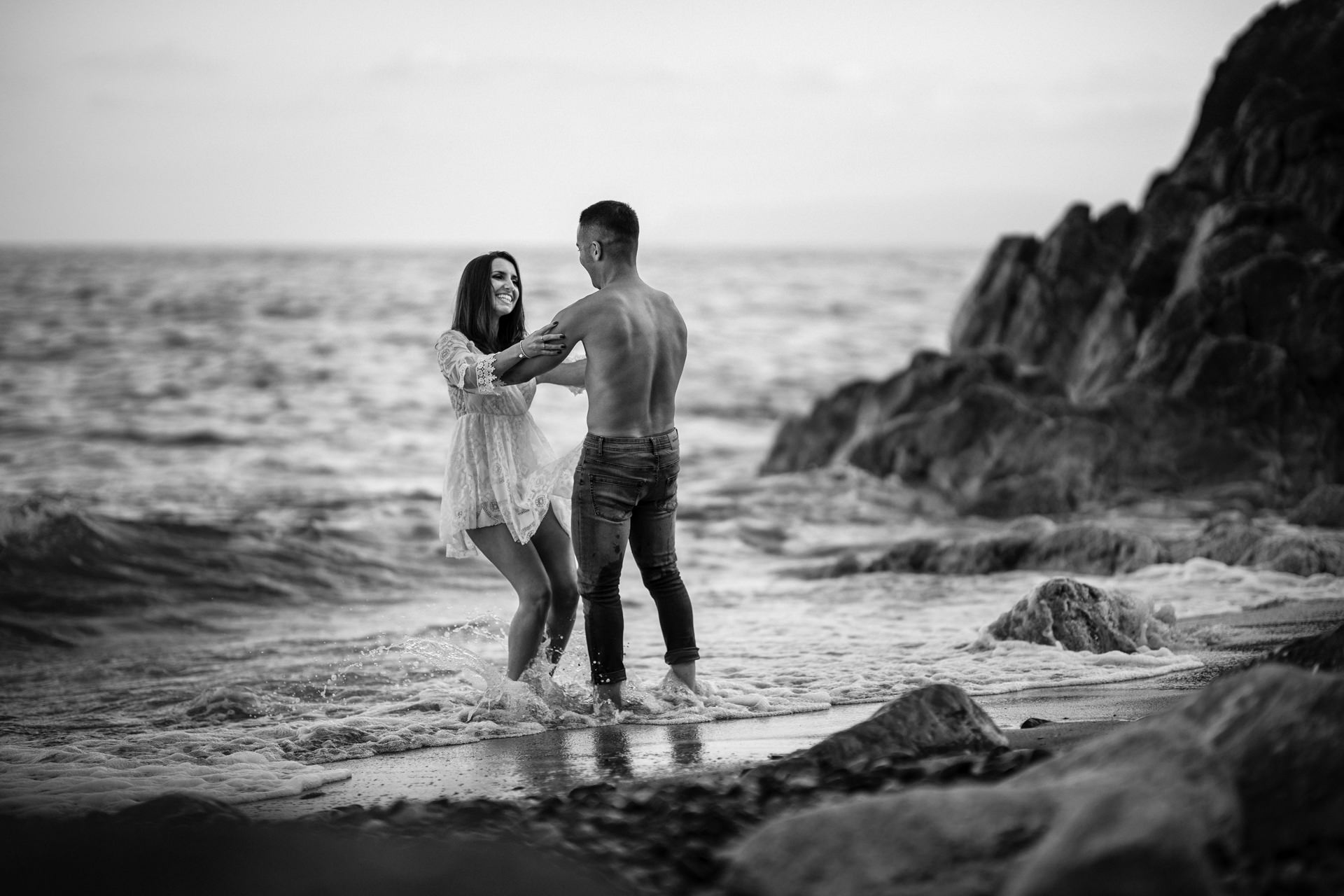 Una sessione di fidanzamento in spiaggia con tuffo finale!
