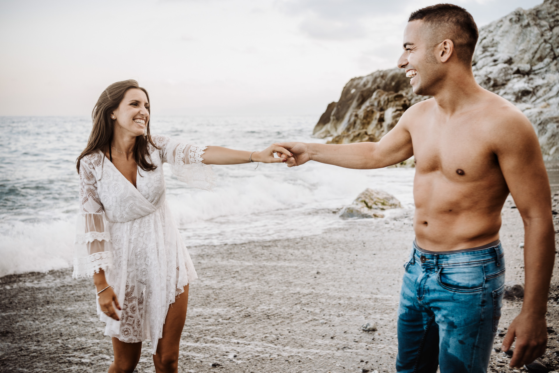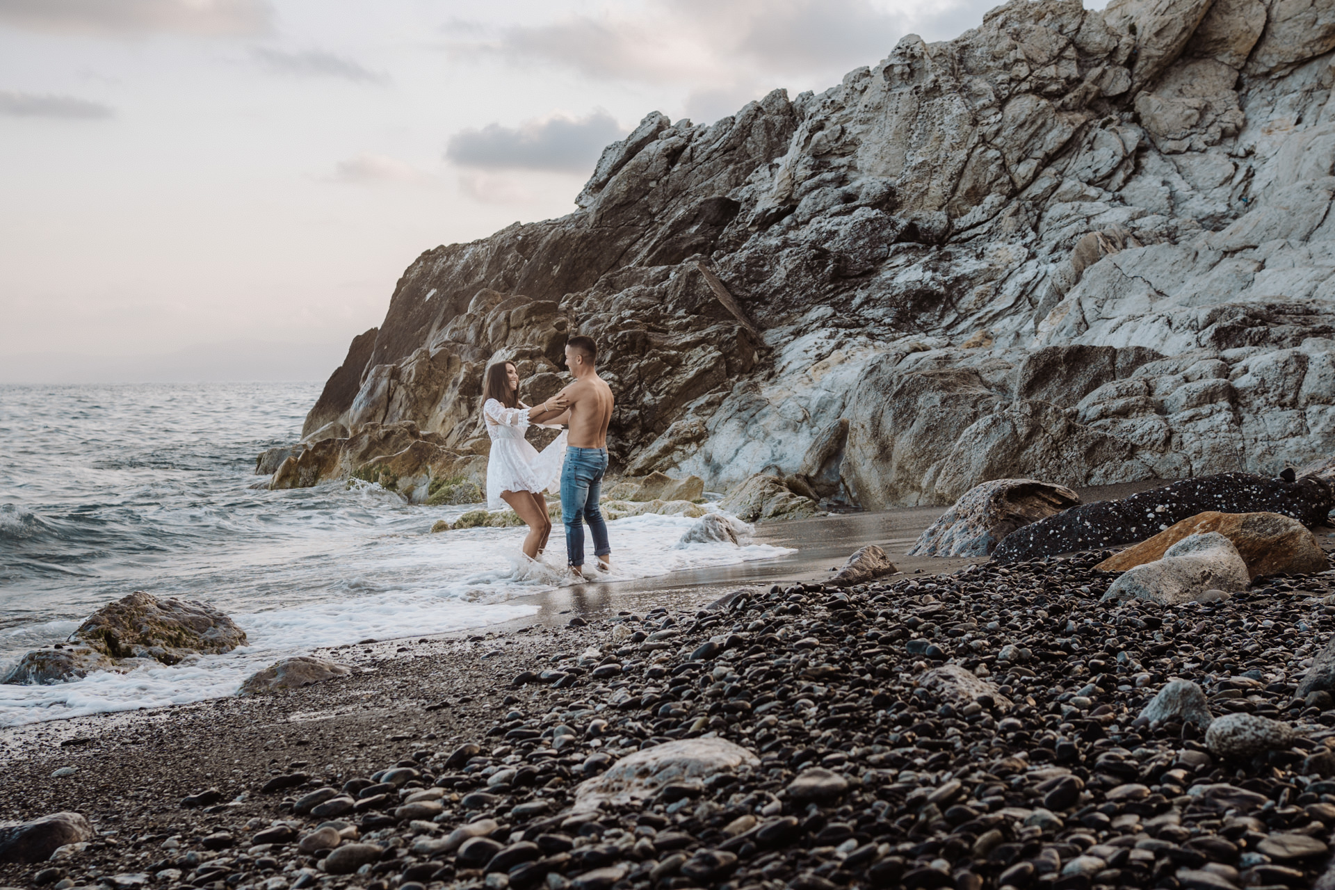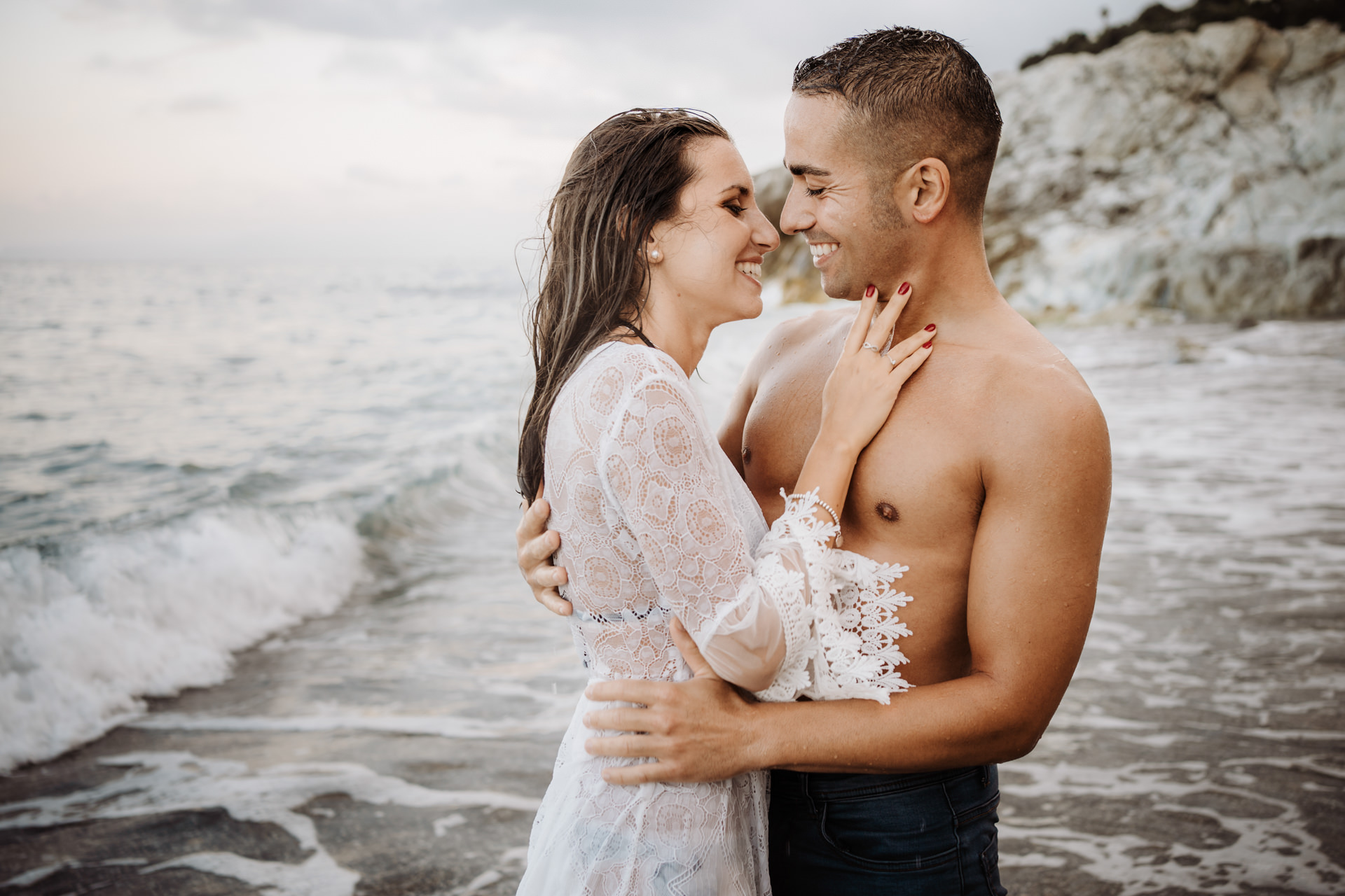 Una sessione di fidanzamento in spiaggia con tuffo finale!