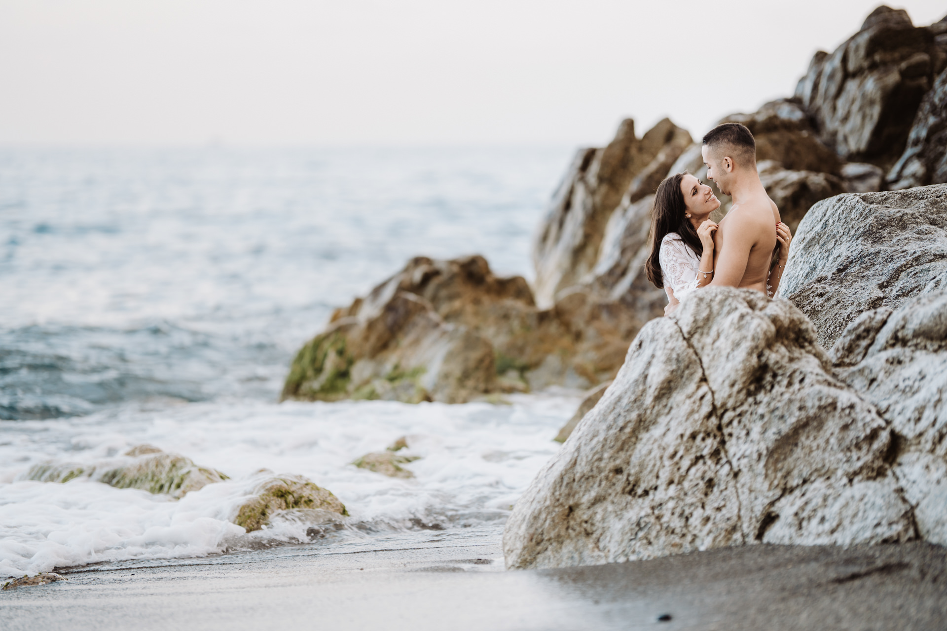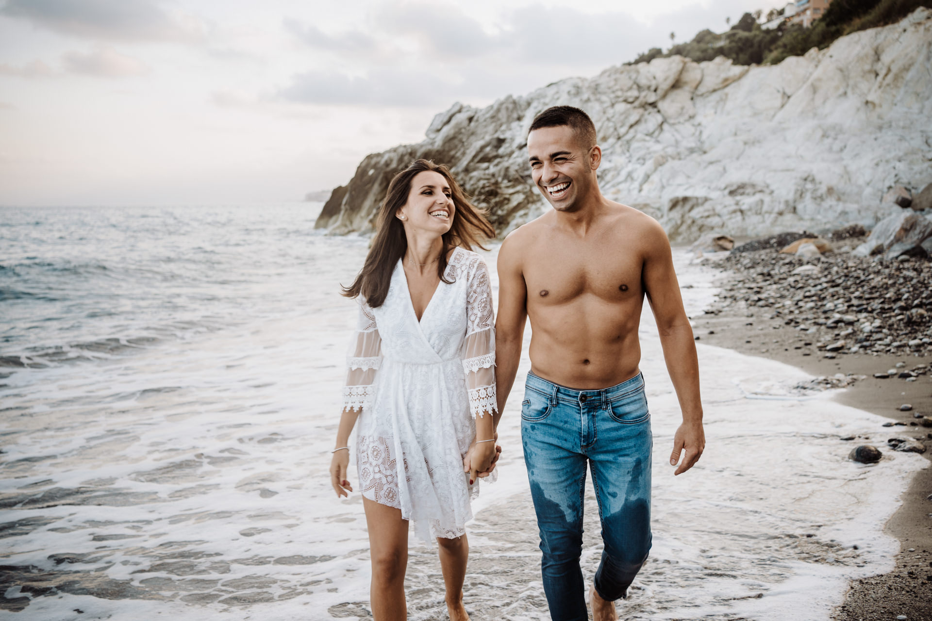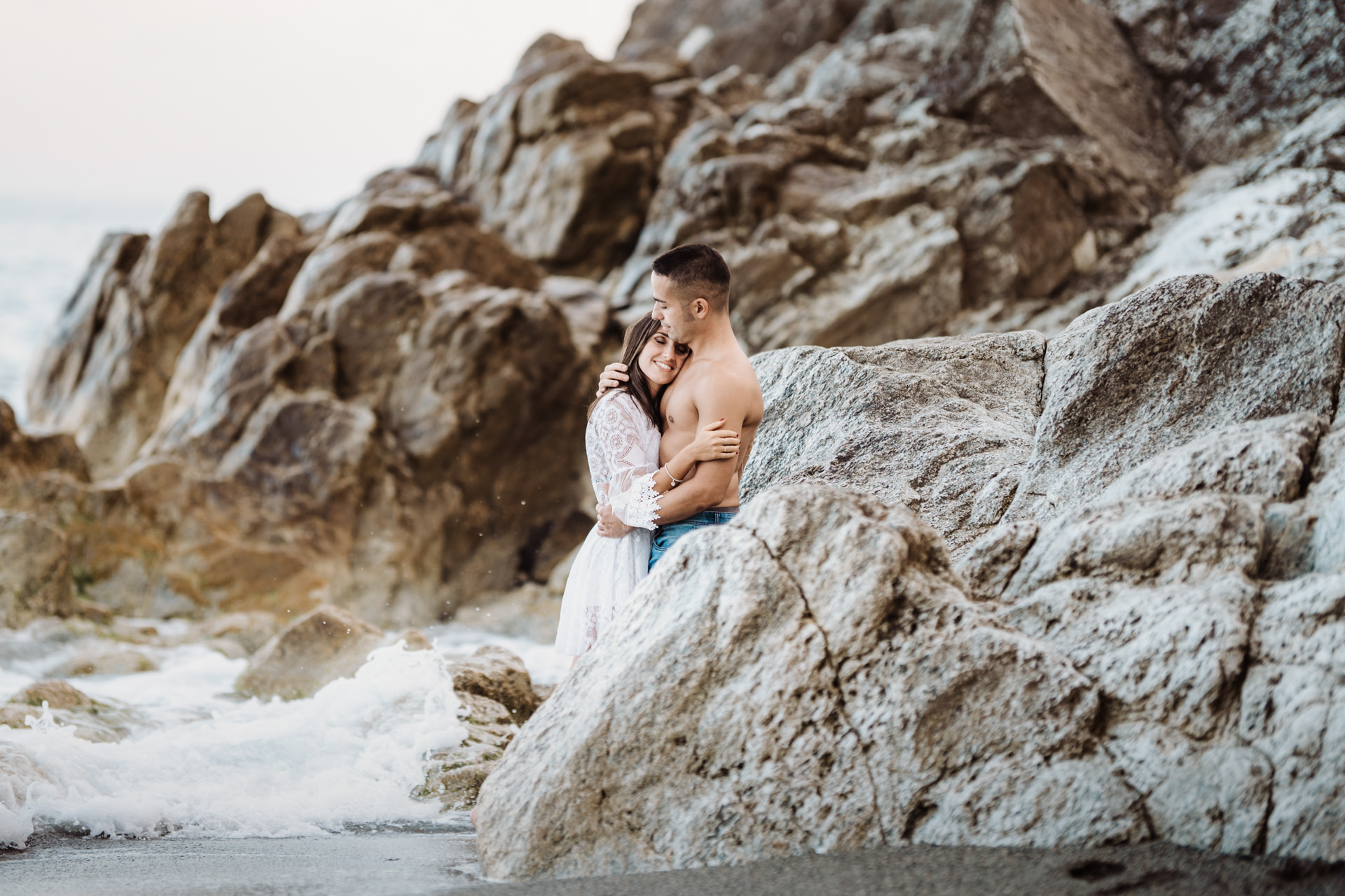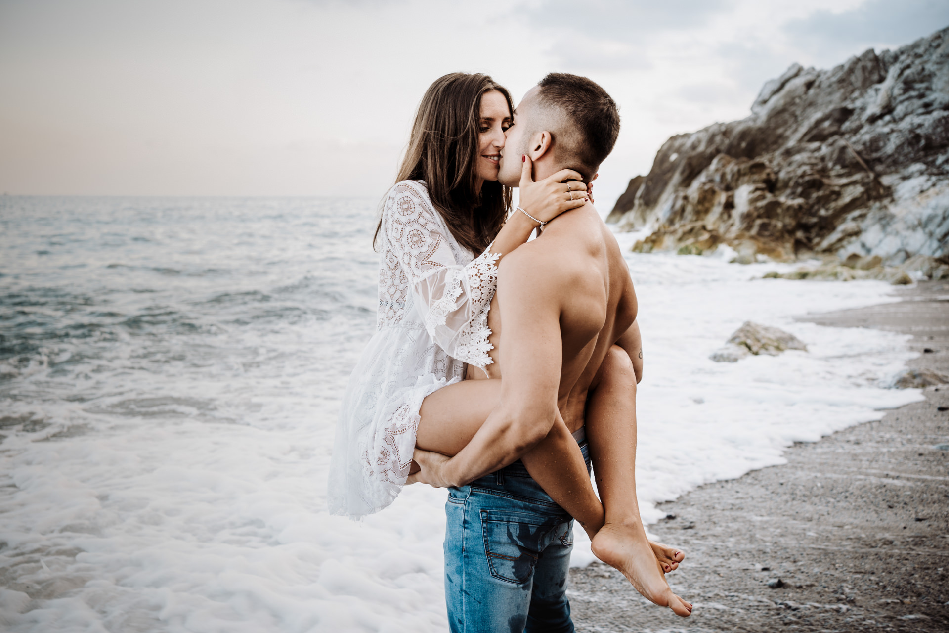 Una sessione di fidanzamento in spiaggia con tuffo finale!