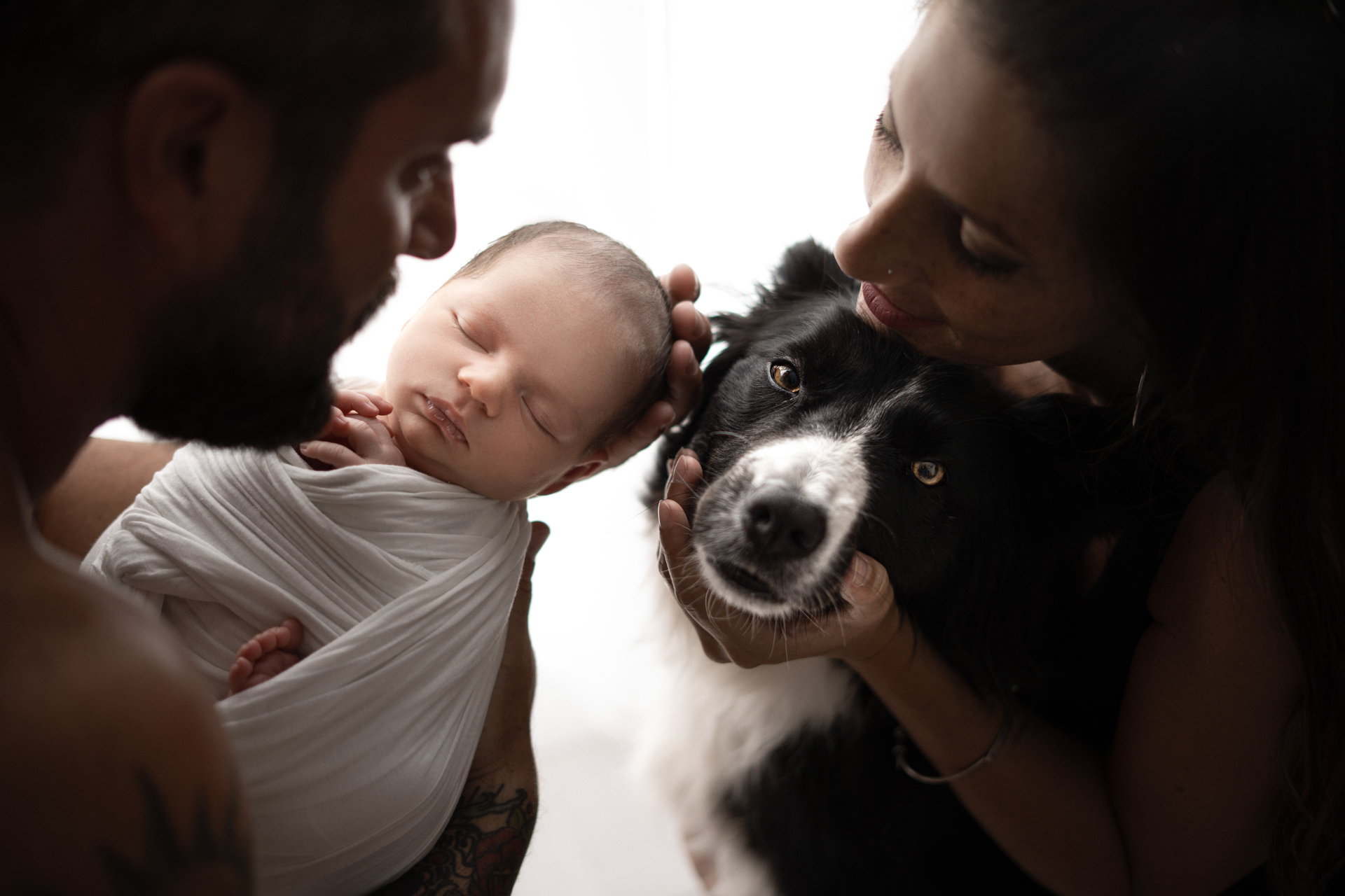 In questa fase spesso i genitori non si sentono al massimo della forma per essere fotografati, tuttavia suggeriamo di lasciarsi andare a qualche scatto per non perdere l’occasione di avere un ricordo unico di questi primi giorni. Per l’abbigliamento di mamma, papà e fratellini/sorelline suggeriamo tinte tenui che stiano bene abbinate tra di loro e possibilmente senza marchi/loghi evidenti. Le fotografie con fratellini e sorelline sono preziose ma anche tra le più complesse da realizzare. Per questo motivo di solito consigliamo di farli intervenire nelle fasi iniziali o conclusive della sessione in modo che, nel momento in cui ci dedicheremo esclusivamente al neonato, loro possano godere attimi di libertà con il papà nella spiaggia di fronte allo studio o nel vicino parco giochi.